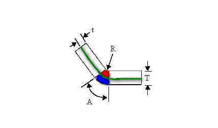 鈑金零件的工程師為保證最終折彎成型后零件所期望的尺寸,會(huì)利用各種不同的算法來計(jì)算展開狀態(tài)下備料的實(shí)際長(zhǎng)度。其中最常用的方法就是簡(jiǎn)單的“掐指規(guī)則”,即基于各自經(jīng)驗(yàn)的算法。通常這些規(guī)則要考慮到材料的類型與厚度,折彎的半徑和角度,機(jī)床的類型和步進(jìn)速度等等。