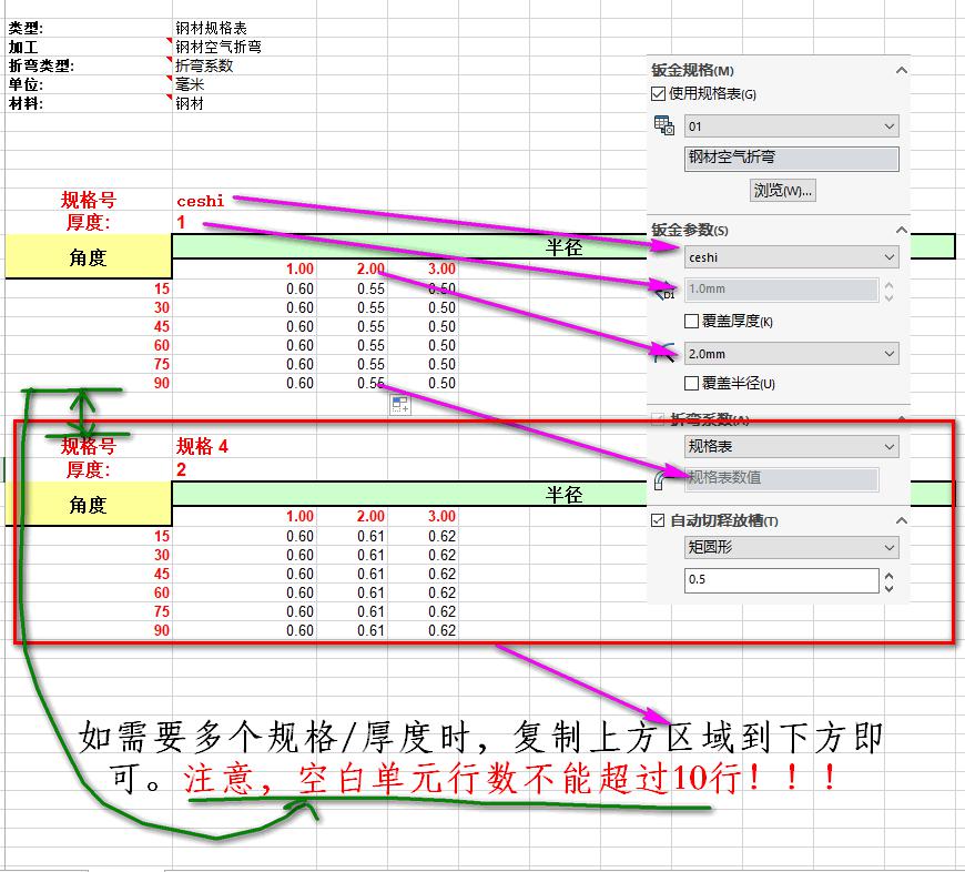 表格編輯位置如下:安裝盤:Program FilesSOLIDWORKS CorpSOLIDWORKSlangenglishSheet Metal Gauge Tablesend allowance mm sample.xls